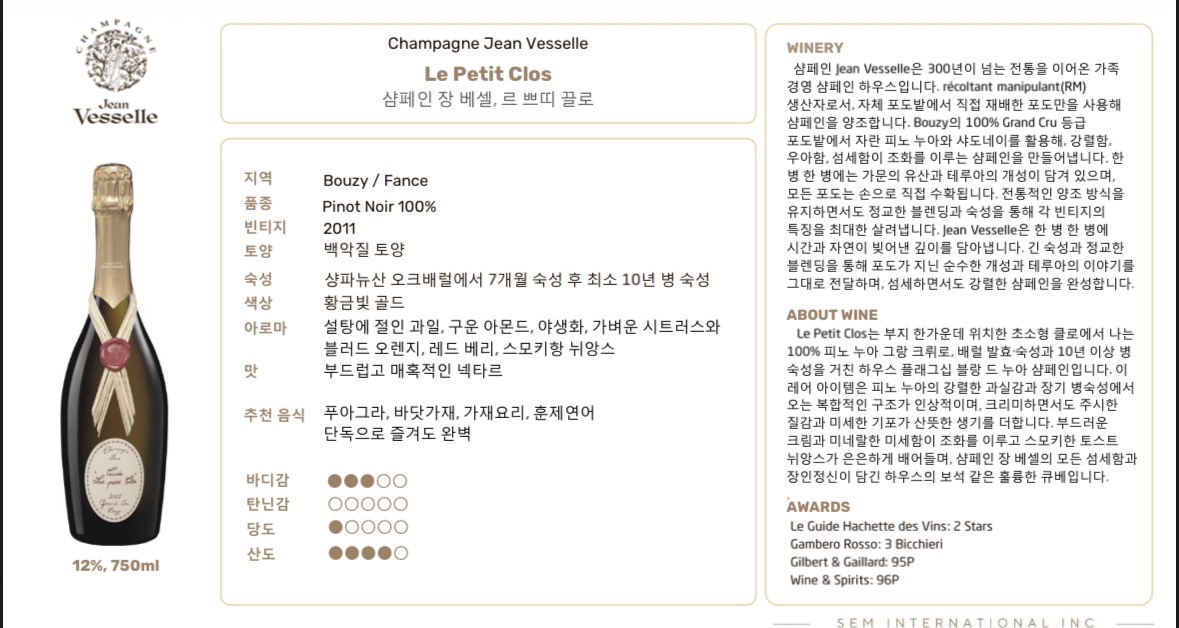 Jean Vesselle, Le Petit Clos Millésimé Grand Cru