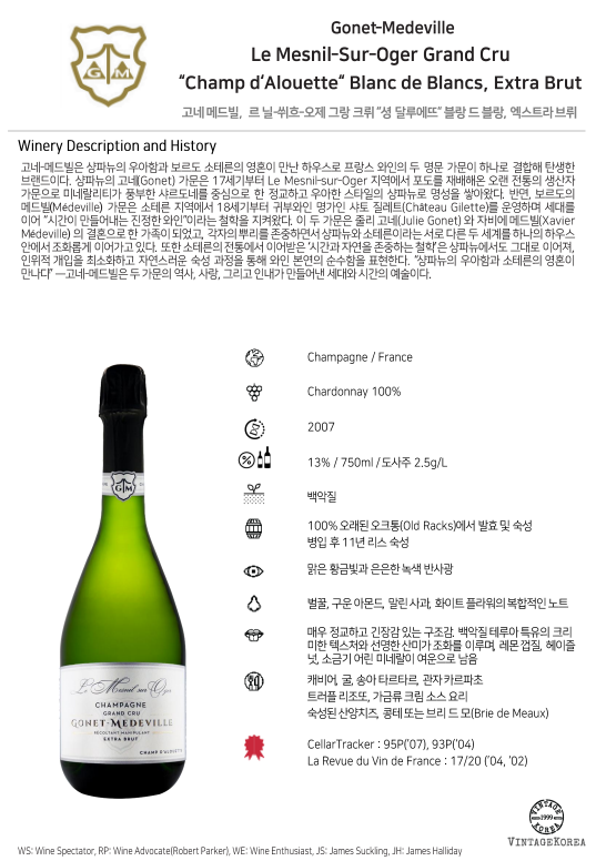 고네-메드빌, 르 닐-쒸흐-오제 그랑 크뤼 “셩 달루에뜨“ 블랑 드 블랑, 엑스트라 브뤼 2007 2007