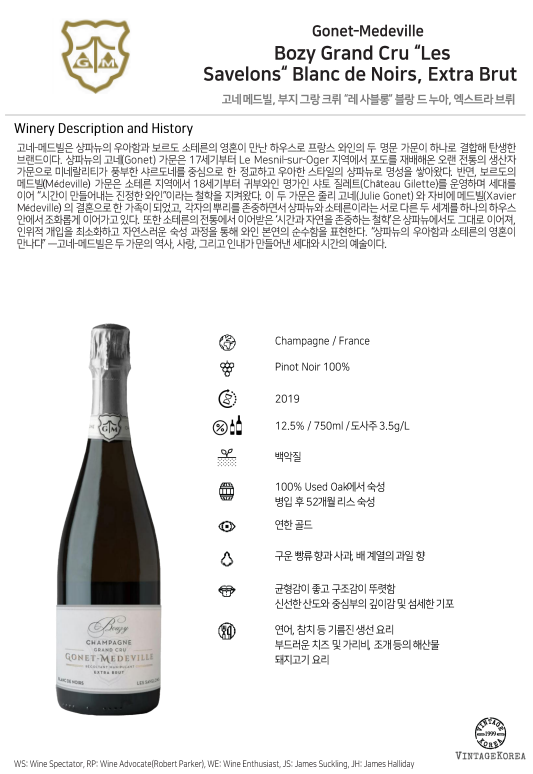 고네-메드빌, 부지 그랑 크뤼 “레 사블롱“ 블랑 드 누아, 엑스트라 브뤼 2019 2019