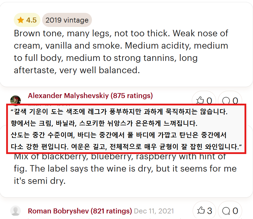 블랙, 레드 과실의 다채로운 향과 플로럴 아로마가 생동감 있게 퍼지며, 미디엄 바디와 부드러운 텍스처로 매우 마시기 좋습니다. 적절한 오크숙성으로 더해진 토스트, 초콜렛 향이 은은하게 퍼지며 뒤로 갈수록 다채로운 부케를 느낄 수 있습니다. 여운있는 피니시는 다음 한모금을 재촉합니다.