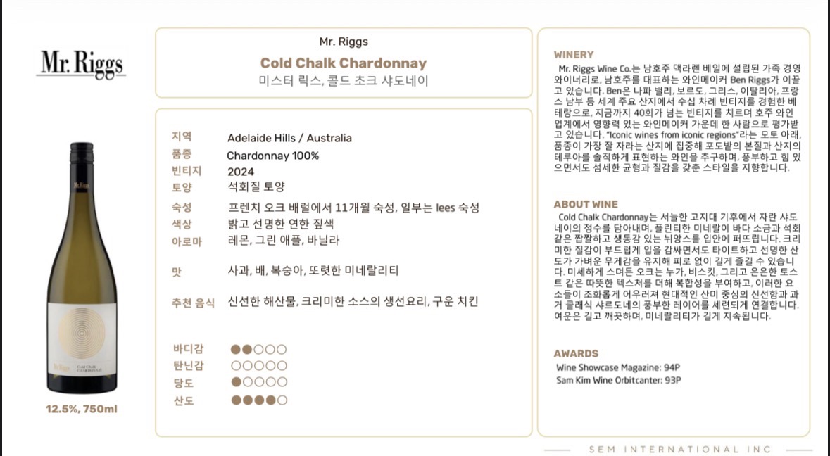 미스터 릭스, 콜드 초크 샤도네이 2024