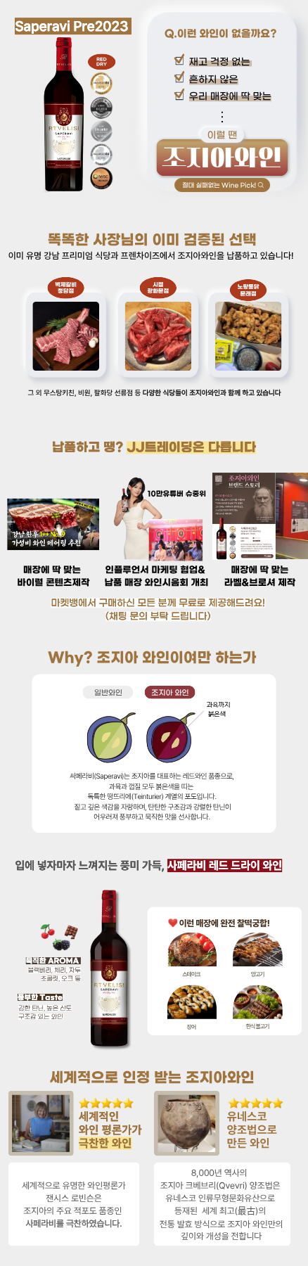 고급스러운 스테이크 디너나, 치즈와 함께 즐기는 와인 나이트에 이상적인 선택. 조지아의 대지와 전통이 담긴 한 잔으로, 유럽 와인의 원류라 불리는 땅의 향을 느껴보세요.