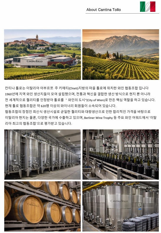 칸티나톨로는 이탈리아 아부르쪼 주키에티(Chieti) 지방의 마을 톨로에 위치한 와인협동조합🍇 입니다