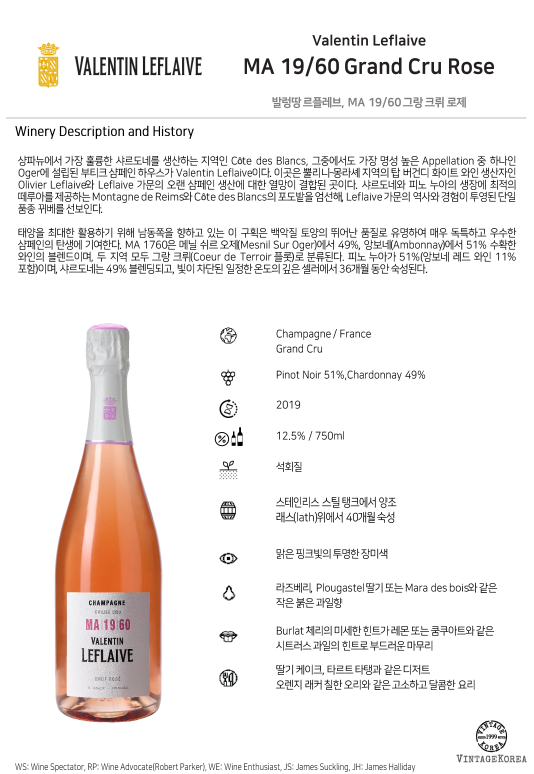 발렁땅 르플레브, MA 19/60 그랑 크뤼 로제, 브뤼 2019