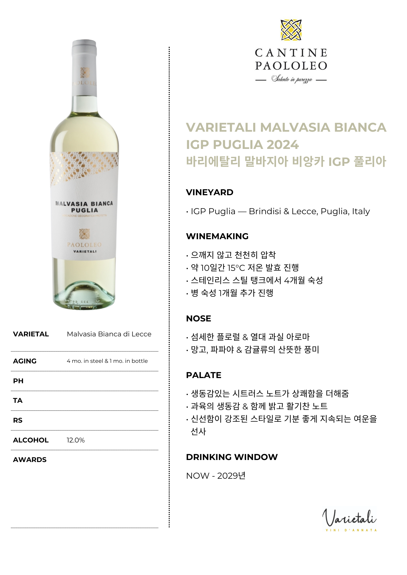 바리에탈리 말바지아 비앙카 IGP 풀리아 2024