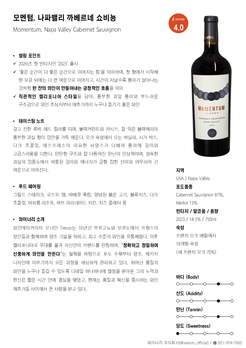 모멘텀, 나파밸리 까베르네 쇼비뇽 2023