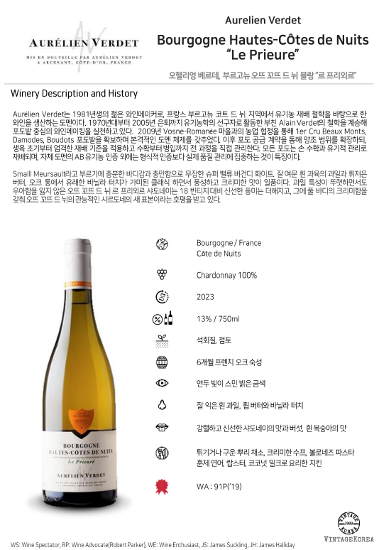 Domaine Aurelien Verdet, Hautes-Cotes de Nuits ˝Le Prieure˝ Blanc