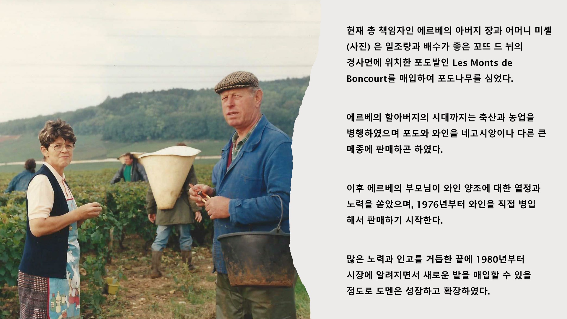 붉은 과실류의 아로마의 밀도 높은 응축미와 전체적인 구조감이 돋보인다. 과하지 않고 자연스러운 부르고뉴 스타일을 기본으로 벨벳 같은 부드러운 타닌과 생생한 산미가 감칠맛을 돋우며 활기차게 어우러진다.
