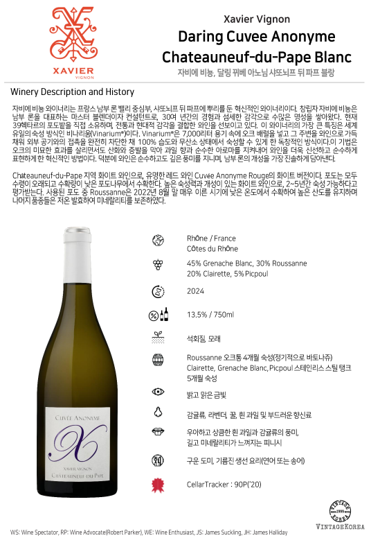 Xavier Vignon, Daring, Cuvee Anonyme, Chateauneuf-du-Pape Blanc
