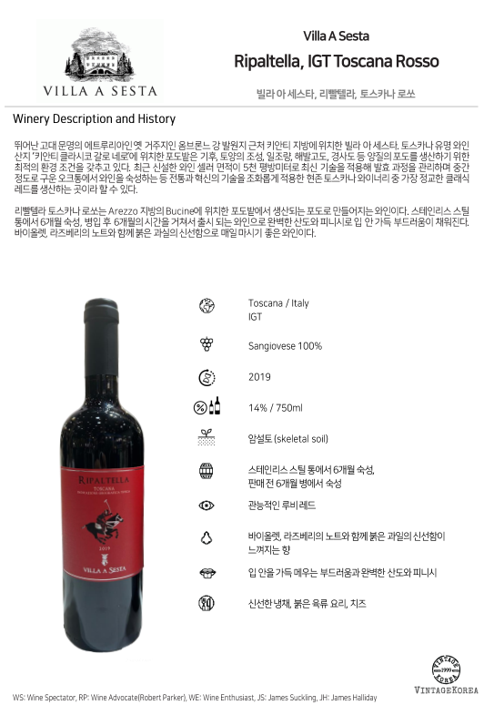 빌라 아 세스타, 리빨텔라 토스카나 로쏘 2019
