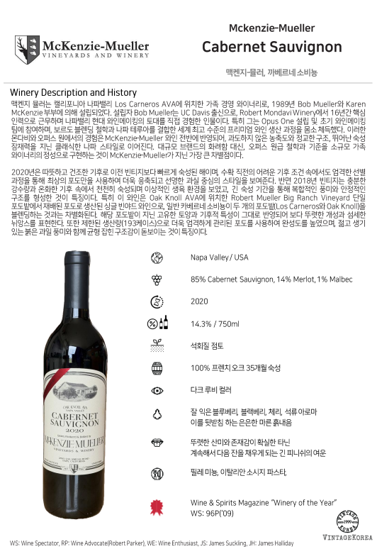 맥켄지 뮬러, 까베르네 소비뇽 오크 놀 2020