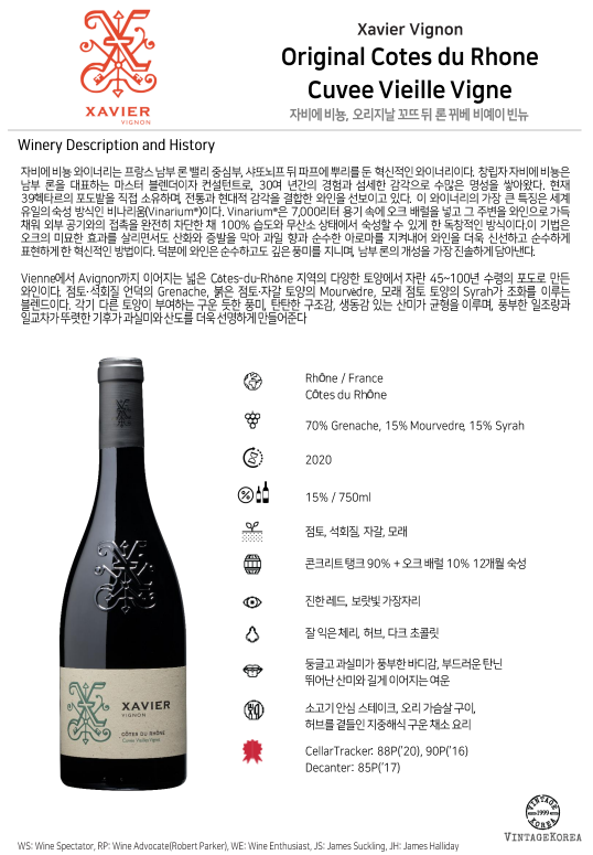 자비에 비뇽, 오리지날, 꼬뜨 뒤 론 뀌베 비예이 빈뉴 2020