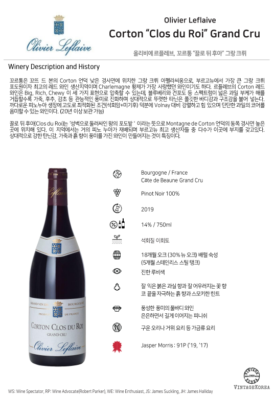 올리비에 르플레브, 꼬르통 ˝끌로 뒤 후아˝ 그랑 크뤼 2019