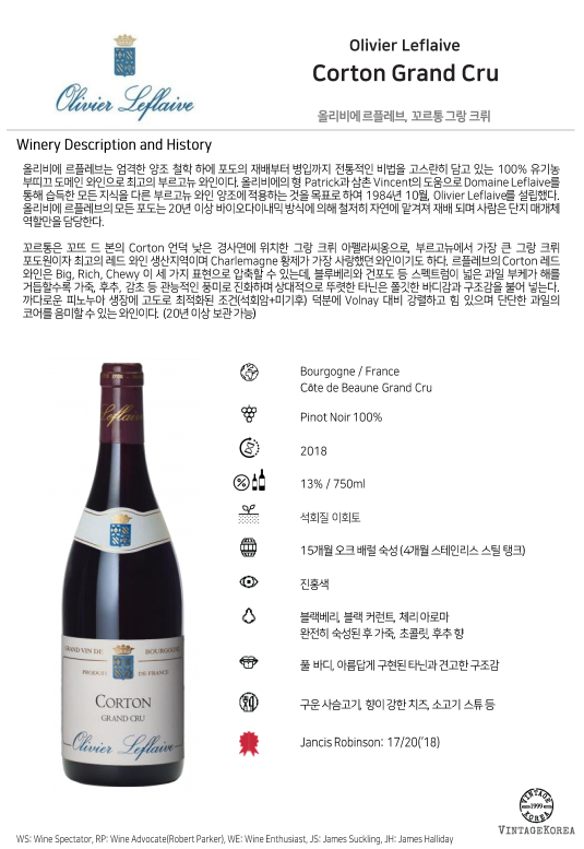 올리비에 르플레브, 꼬르통 그랑 크뤼 2018